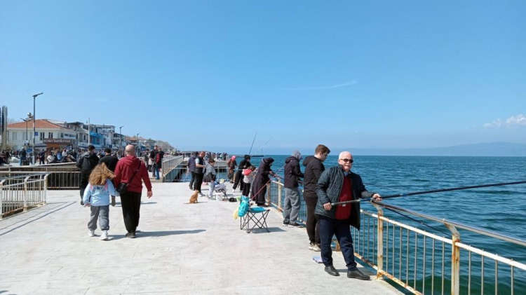 soluğu Mudanya’da aldı. Sahil Bulvarında adeta adım atacak yer kalmadı. Çocuklarıyla beraber gezerken denize olta atıp balık tutmaya çalışanlardan, çocuklarını oyun parklarında eğlendirmeye çalışan aileler hallerinden oldukça mutlu görünüyorlardı.