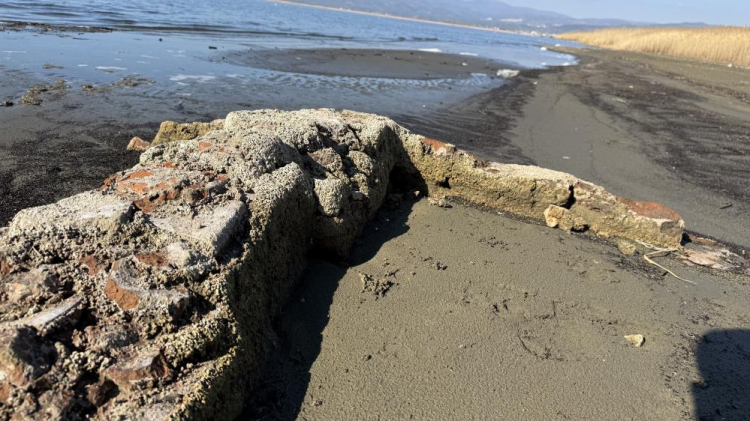 Göl sularının çekilmesiyle tamamen görünür hâle gelen kalıntıların, İznik sahil bandında kumsalın hemen yanında yer aldığı görülürken, yapıyı fark eden ekip heyecan yaşadı.