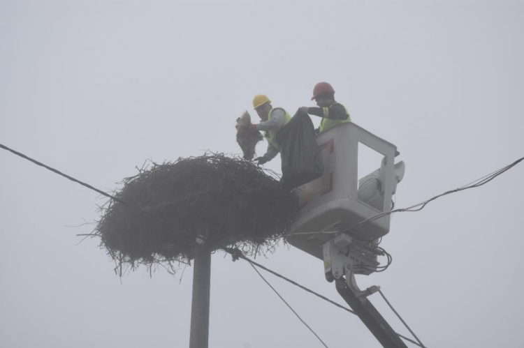 Karacabey'deki leylek yuvalarında geleneksel temizlik