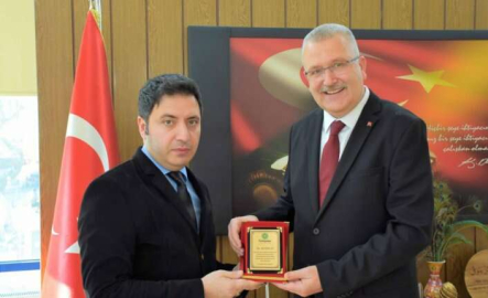 Fabrika Müdürü Kürşat Erdoğan, ziyaret sonunda çalışmalara katkılarından dolayı Belediye Başkanı Ali Özkan’a plaket takdim ederek teşekkürlerini iletti.