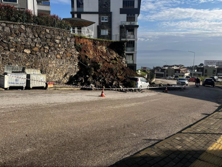 Mudanya'da yağmura dayanamayan istinat duvarı çöktü