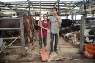 Henüz 12 yaşında olan Aytaç Özmen ile 8 yaşındaki kardeşi Ecrin Özmen, sabahın erken saatlerinden itibaren babalarına yardım ederek hayvanların bakımını üstleniyor. Büyükbaş hayvanların yemlenmesi, sulanması ve temizliği gibi işleri büyük bir sorumlulukla yerine getiren kardeşler, yaşlarının çok ötesinde bir gayret gösteriyor. Bayrama sayılı günler kala pazarda yoğunluk artarken, Aytaç ve Ecrin’in çalışkanlığı hem esnafın hem de vatandaşların takdirini topluyor. Küçük yaşlarına rağmen gösterdikleri çaba, kurban pazarının en güzel görüntülerinden biri olarak hafızalara kazınıyor.