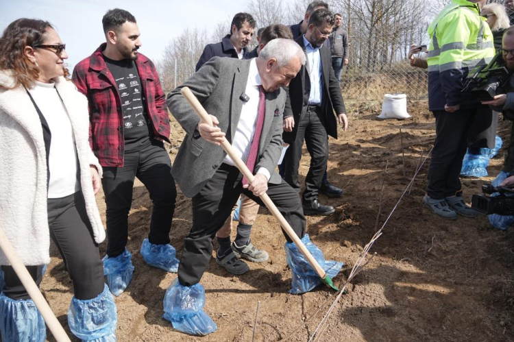 Bursa'da çiftçiyi tarıma teşvik etmek ve üretimi desteklemek hedefiyle Kadriye Mahallesi'nde 6 dekarlık alana ahududu dikildi.