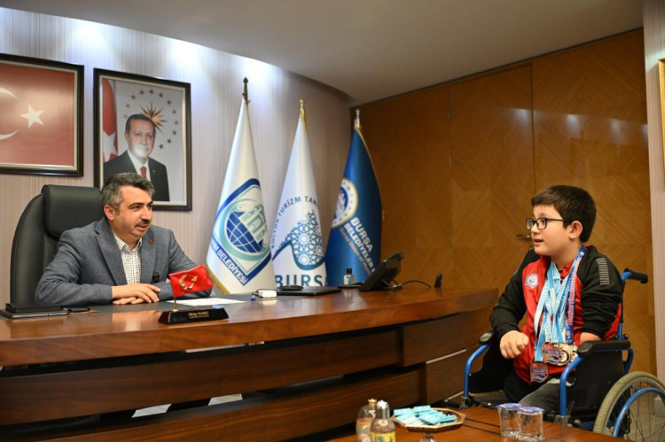 Doğuştan bacakları ve sol kolunun dirseğinden aşağısı olmayan 10 yaşındaki Yıldırım Belediyesporlu para yüzücü Muhammed Ali Biçer, 29-30 Aralık Tarihleri’nde 40 şehir, 50 kulüpten 160 sporcunun katılımıyla düzenlenen Türkiye Yüzme Federasyonu Para Yüzme ve DEAF Yüzme Bireysel Milli Takım Seçmeleri’nde 4 birincilik, 4 üçüncülük ve bir dördüncülük kazandı. Yıldırım Belediye Başkanı Oktay Yılmaz, azimle attığı her kulaçta engellerin aşılacağını öğreten Muhammed Ali Biçer’i başarılarından dolayı tebrik etti.
