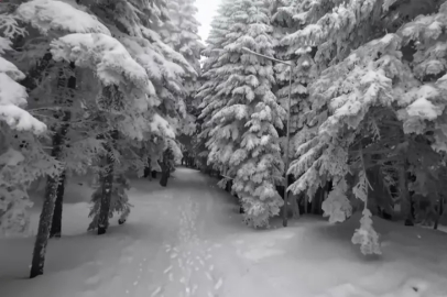 Doğa Koruma ve Milli Parklar 2. Bölge Müdürlüğü tarafından dron ile kayda alınan görüntüler, Uludağ'ın beyaza bürünmüş ağaçlar arasındaki güzelliklerini gözler önüne serdi.