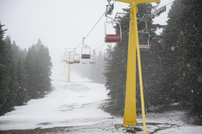 Kış turizmi destinasyonlarından Uludağ'a mayısta yağan kar pistlerin bir kısmını beyaza bürüdü.