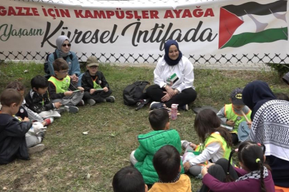 Bursa Teknik Üniversitesi öğrencilerinin, İsrail'in Filistin halkına yönelik aylardır düzenlediği saldırıları protesto etmek için kurdukları çadırlar, anaokulu öğrencileri tarafından ziyaret edildi.