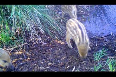 Doğa Koruma ve Milli Parklar 2. Bölge Müdürlüğü tarafından kurulan fotokapana, bu sefer yapan domuzları takıldı. Yavru domuzların panik halinde yiyecek araması kameralarca kaydedildi.