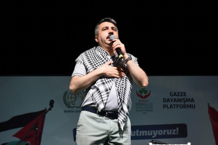 Akşam namazının ardından Gökdere Meydanı’nda toplanan kalabalık, ellerindeki meşalelerle Bayrak Alanı’na doğru yürüyüşe geçti. İsrail'in saldırılarını kınayan ve Filistin’e destek sloganları atan kalabalık, Bayrak Alanı’nda düzenlenen programda Kur'an-ı Kerim tilavetini dinleyip dua etti. Yıldırım Belediye Başkanı Oktay Yılmaz’ın ve Özgür-Der Genel Başkanı Rıdvan Kaya’nın konuşmalarının ardından Grup Yürüyüş, Filistin için hazırladığı ezgileri seslendirdi.