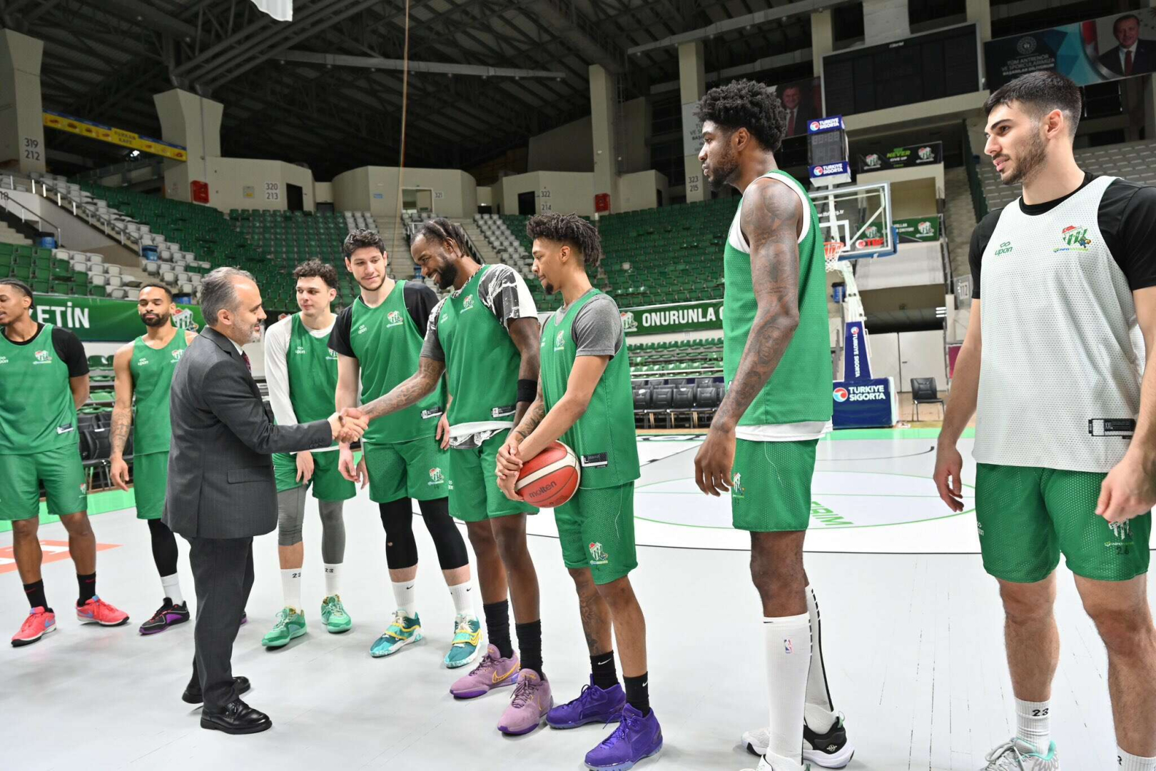 Bursa Büyükşehir Belediye Başkanı Alinur Aktaş, Bursaspor Basket takımını ziyaret etti.