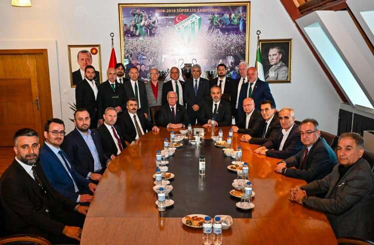 Bursaspor Kulübü, bugün önemli misafirleri ağırladı. Bursa Büyükşehir Belediye Başkanı Alinur Aktaş, Osmangazi Belediye Başkanı Mustafa Dündar, Yıldırım Belediye Başkanı Oktay Yılmaz, Ak Parti Nilüfer Belediye Başkanı Adayı Celil Çolak, Ak Parti Bursa İl Başkanı Davut Gürkan, MHP Bursa İl Başkan Yardımcısı Ali Cansevdi, Ak Parti Nilüfer İlçe Başkanı Furkan Alpaslan ve beraberindeki heyet, Özlüce İbrahim Yazıcı Tesisleri’nde yönetimi ziyaret etti. Gerçekleşen ziyarete Bursaspor Kulübü adına Başkan Sinan Bür ve yönetim kurulu üyeleri; Sinan Oral, Erkan Öncel, İsmail Ertekin, Beyhan Çalışkan, Gökhan Güleç, Adem Bostan, Alper Özyüksel, Erdinç Doğan, Şaban Doğan, Salih Fındıkkaya ve Orhan Efe hazır bulundu.