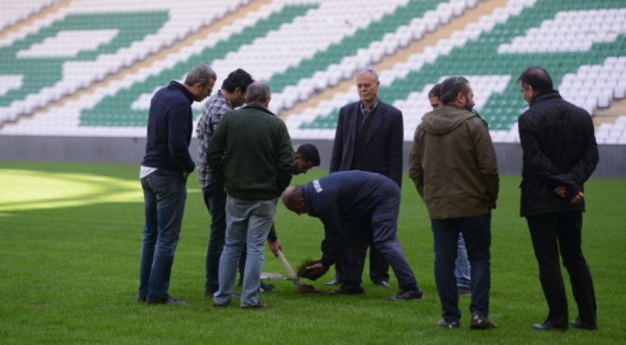 Bursa Büyükşehir yetkilileri Timsah Arena'nın zeminini inceledi