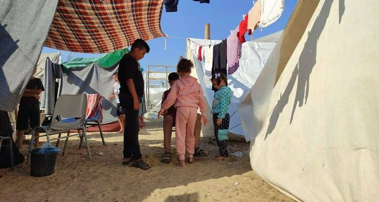 BM Filistinli Mültecilere Yardım Ajansı (UNRWA), Gazze Şeridi’nin güneyindeki Han Yunus kentine şeridin kuzey bölgelerindeki saldırılardan kaçan Filistinliler için çadır kampı kurdu. İsrail’in saldırılarından kaçan Filistinli aileler, çocuklarıyla birlikte çadır kampına sığındı.