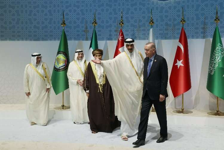 Cumhurbaşkanı Recep Tayyip Erdoğan, temaslarda bulunduğu Katar’ın başkenti Doha’da 44. Körfez İşbirliği Konseyi Zirvesi'ne katıldı. Konuşmasına teşekkür ederek başlayan Cumhurbaşkanı Erdoğan, “Körfez ülkeleriyle ilişkilerimiz her geçen gün gelişiyor. Bugün burada sizlerle olmam da münasebetlerimizi daha da ileri taşıma irademizin bir tezahürüdür. İnşallah el birliği, gönül birliği içerisinde hareket ederek münasebetlerimizi güçlendireceğimize inanıyorum. Körfez ülkeleriyle ticaret hacmimiz son 20 yılda 13 kat artarak geçen sene itibarıyla 23 milyar dolara ulaştı. Türkiye-Körfez İşbirliği Konseyi Serbest Ticaret Anlaşması müzakerelerine yeniden başlanması ve anlaşmanın kısa sürede yürürlüğe girmesi, ticaretimizi daha da artıracaktır. Körfez ülkelerindeki kardeşlerimizin turistik seyahatlerinde en çok tercih ettiği ülkelerin başında Türkiye'nin gelmesi bizler için ayrı bir mutluluk kaynağıdır. Konseyle ilişkilerimizin temel unsuru olan Stratejik Diyalog Bakanlar mekanizması bugüne kadar 5 toplantı yaptı. Dışişleri Bakanlarımızın iştikakıyla düzenlenen toplantıların 6'ncısına inşallah 2024 yılının ilk çeyreğinde ev sahipliği yapacağız” ifadelerini kullandı.
