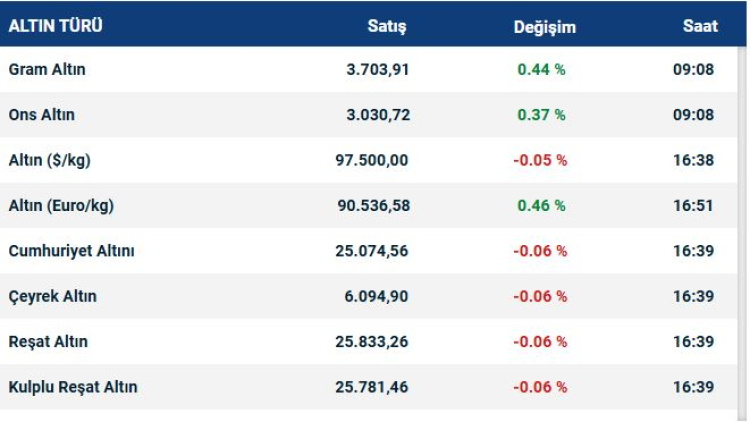 Altının gram fiyatı da ons altına paralel yükseldi. Gram altın, 3 bin 700 liranın üzerine çıktı. Çeyrek altın ise 6 bin 87 liradan el değiştirdi.
