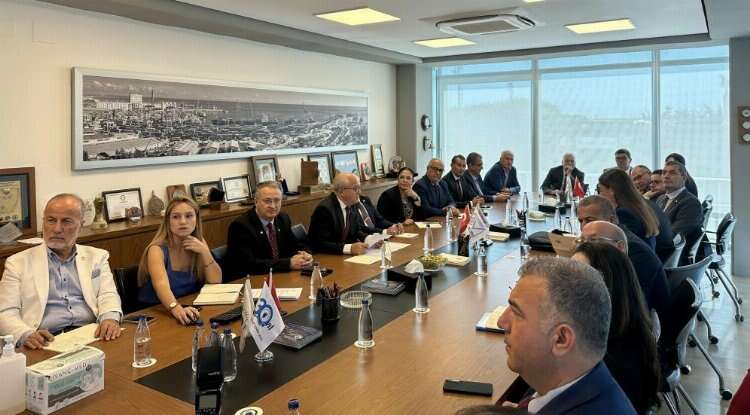 Bir dizi temas ve inceleme için Mersin’e gelen Kuzey Kıbrıs Türk Cumhuriyeti (KKTC) Maliye Bakanı Özdemir Berova, beraberinde KKTC Mersin Başkonsolosu Zalihe Mendeli, bakanlık yetkilileri ve Kıbrıs Türk Ticaret Odası temsilcileri ile birlikte Mersin Deniz Ticaret Odası’nı ziyaret etti. MDTO Meclis Başkanı Jozet Atat, Yönetim Kurulu Başkanı Cihat Lokmanoğlu, Meclis Başkan Yardımcısı Ayla Harp ve yönetim kurulu üyelerince karşılanan Kıbrıs heyetine, bölgedeki limanlara ve deniz ticaretine ilişkin bilgiler verildi. Toplantıda, KKTC ve Mersin limanlarında yaşanan sorunlara ilişkin görüş alışverişinde bulunuldu.