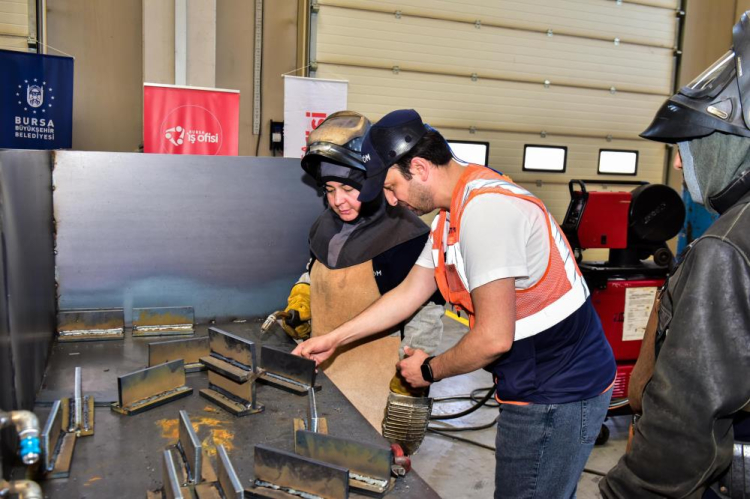 Bursa Büyükşehir Belediyesi tarafından düzenlenen ‘Gazaltı kaynak eğitimi’ne katılan kadınlar, eğitimlerin ardından kaynak ustası olarak istihdam edilecek.