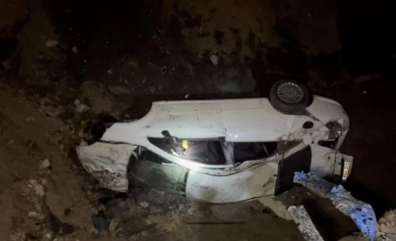 Bursa'da kontrolden çıkan otomobil metro inşaatına uçtu