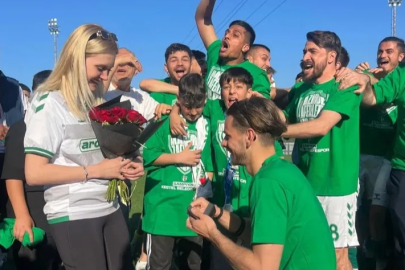 Kestel Belediyespor geçtiğimiz pazar günü Atıcılar Veysel Karani Sahası'nda oynanan Küplüpınar Yeşildağspor karşılaşmasını 3-0 kazanarak adını Bölgesel Amatör Lig'e (BAL) yazdırdı. Kestel Belediyespor forması giyen 24 yaşındaki tecrübeli kanat oyuncusu Hafız Görkem Vardar, maçın bitiminde kız arkadaşına sahada evlenme teklifinde bulundu. Evet cevabının ardından takım arkadaşları tarafından alkışlarla tebrik edilen genç çift, evlilik yolunda ilk adımı yeşil sahalarda atmış oldu