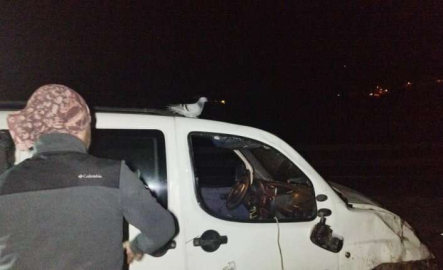 Bursa'da takla atan araçtaki güvercin araç başından ayrılmadı