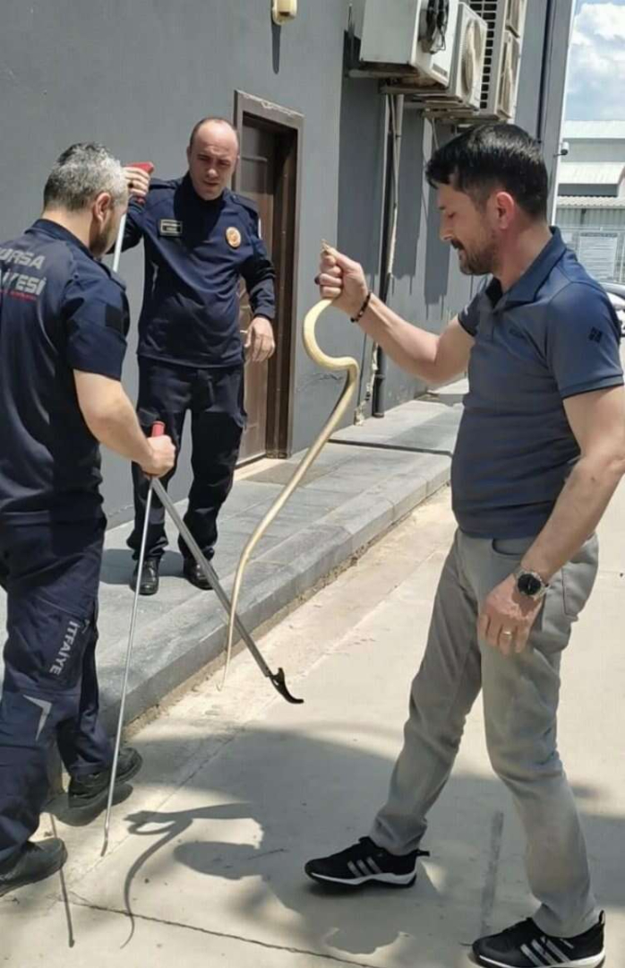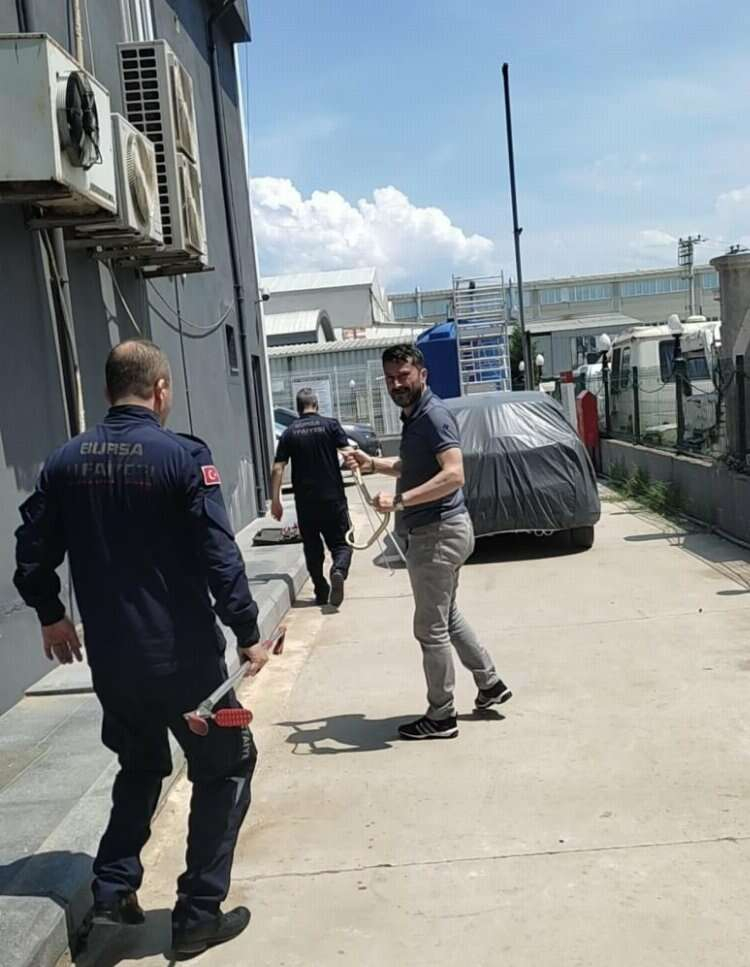 Bursa'da yılan paniği! İş adamı, elleriyle yakaladı