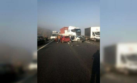 Bursa’da etkili olan sis sonucu Bursa-Karacabey yolunda aralarında tırlarında bulunduğu 10 araç birbirine girdi.