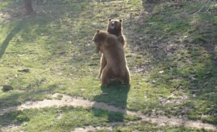 Bakıcıları tarafından iyi bakılmasıyla keyifleri yerinde olan ayılardan kimi ağaç altında şekerleme yaparken, kimi ise kendi dengi ile güreşe tutundu. Dron ile kayda alınan o anlar, renkli görüntülere sahne oldu. Ayıların birbirlerine zarar vermeden yaptıkları güneş, birisinin pes etmesiyle son buldu.