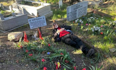 Kendi mezarının başına tabela da koyan Ali Aytekin, 'Son durak. Mezarlığı ziyaret ettim. Kimin zengin kimin fakir olduğunu anlayamadım. Anladığım tek şey hepsi Fatiha bekliyor” yazdırdı.