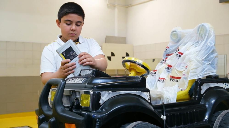 Bursa'da 23 Nisan Ulusal Egemenlik ve Çocuk Bayramı'ndan önlüğü giyen minikler, oto tamir ustalığına soyundu. Satış sorumluluğundan ekspertize kadar birçok alanda görülen miniklerin videosu, izleyenlerin yüzünü gülümsetti.
