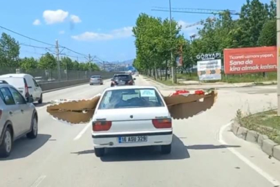 Bursa'da otomobille çelenk taşıyan sürücü kameraya yakalandı. Gündüz vakti otomobilin bir camından diğer camına çıkardığı çelenk ile şehir turu atan şahıs, trafikteki diğer sürücülerin güvenliğini hiçe saydı.