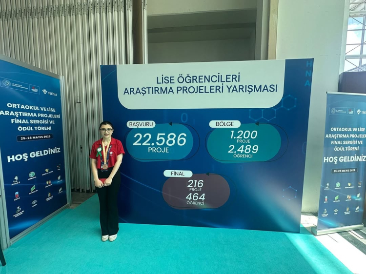 Gökçe Ceyda Bilgin, TÜBİTAK Türkiye 3’üncüsü ve MEF Araştırma Projeleri Türkiye 1’incisi oldu. Halil İnalcık Bilim Sanat Merkezinden Fizik Öğretmeni Hakan Özkaynak’ın danışmanlığında Makine Öğrenimi Destekli Yönlendirilmiş Evrim ile Deniz Plastiklerini Parçalayabilen Ekoenzim Geliştirilmesi projesiyle çevre bilincine katkı sundu.
