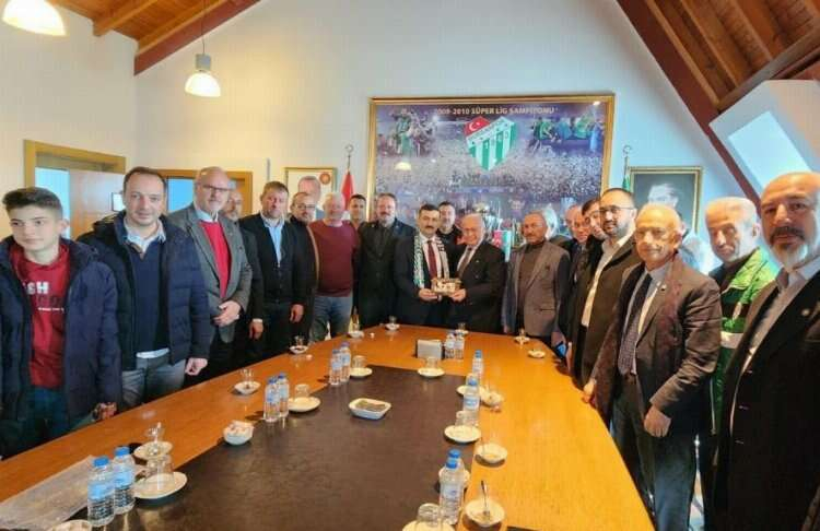 İYİ Parti Bursa Milletvekili ve Bursa Büyükşehir Belediye Başkan Adayı Selçuk Türkoğlu, Bursaspor Kulübü’nü ziyaret etti. Türkoğlu, beraberindeki heyetle yaptığı ziyaret sonrası sosyal medya hesabından yaptığı açıklamada, “Bursa’mızın en önemli marka değeri Bursaspor’u yeniden ayağa kaldırıp asıl yeri olan Süper Lig’e çıkarabilmek için elini taşın altına koyan Sinan Bür başkanlığındaki yönetim kurulunu ziyaret ederek başarılar diledik. İnanıyoruz ki, Bursa marka değerine sahip çıkıp yeniden eski günlerine dönecektir” ifadelerini kullandı.
