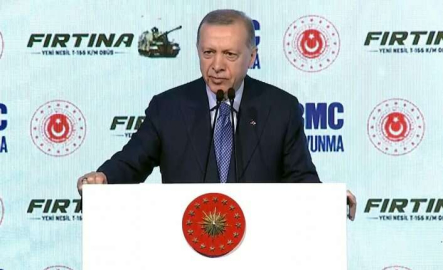 Cumhurbaşkanı Recep Tayyip Erdoğan, ihracat alanında gurur verici bir tabloya şahit olunduğuna dikkat çekti. 20 yıl önce 248 milyon dolar olan savunma ihracatının, 2022 yılında 4 milyar 400 milyon dolarla rekor kırdığını ifade eden Erdoğan, "Bundan 5-6 yıl öncesine kadar dünyanın ilk 100 savunma şirketi listesinde 2 firmamız varken, bugün aynı listede 7 tane firma ile temsil ediliyoruz. İHA, SİHA VE taarruzi insansız hava araçlarının üretiminde ise dünyanın ilk 3,4 ülkesi arasında yer alıyoruz. Karabağ zaferinden Libya'ya, terörle mücadeleden nokta operasyonlarına kadar geniş bir alanda Türk SİHA'ları elde ettikleri başarılarla savaş yöntemlerini de dünyada değiştiriyor. Bugün silahlı ve taarruzi insansız hava araçlarımız, fırtına obüslerimizle birlikte özellikle sınırlarımız dışından ülkemizi hedef alan terör örgütlerinin kabusu haline gelmişlerdir. Suriye harekatlarımız sırasında bu iki kabiliyetimizin ne kadar önemli ve kritik rol üstlendiğini bizzat müşahede ettik. Yeni nesil fırtına obüslerimizin de envantere girmesiyle, yani sağında solundaki bu dev eserlerimizle inşallah bu gücümüzü perçinliyor, daha da sağlamlaştırıyoruz" dedi.