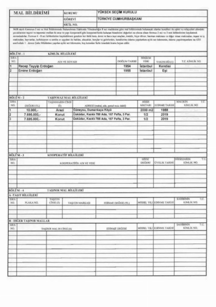 YSK kararında Cumhurbaşkanı Erdoğan ile eşi Emine Erdoğan’ın mal varlığına yer verildi.