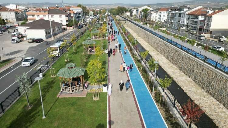850 metre uzunluğunda derenin her iki yakasını da kapsayacak şekilde yapılan uygulamayla Bedre Su Deresi yeni bir görünüme kavuşurken, kanal boyu 7’den 77’ye her yaştan bireyin zaman geçirebileceği bir sosyal donatı alanına dönüştü. 37 bin m2 alan üzerinde projelendirilen Kanal İnegöl, aynı zamanda 630 yeni ağacın toprakla buluştuğu, 18 bin 280 adet süs bitkisi ve çalı bitkisinin yer aldığı bir oksijen deposuna dönüştü.