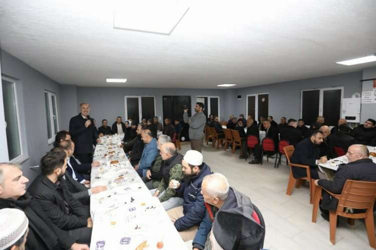 Belediye Başkanı Alper Taban ile beraberindeki AK Parti İlçe Başkanı Mustafa Durmuş, Belediye Başkan Yardımcısı Fevzi Dülger, meclis üyeleri ve AK Partili yöneticilerin katılımıyla gerçekleşen Bereket Sofrası etkinliğinde, sabah namazının kılınmasının ardından caminin avlusunda kısa bir süre önce açılışı yapılan Taziye Evinde bulunan çay ocağında cemaatle birlikte kahvaltı sofrasına geçildi. Zeytin, peynir ve simitle yapılan kahvaltı sonrası vatandaşlara hitaben konuşan Belediye Başkanı Alper Taban, gündeme dair değerlendirmelerde bulundu.