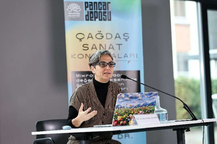 Posthümanizm ve onun açtığı düşünce ufuklarına değinen Prof. Dr. Sibel Yardımcı Yalçıntan, Türkiye çağdaş sanatında bu çerçevede gerçekleştirilen çalışmaları da paylaştı. Türk sanatçılar Mehmet Ali Boran, Şafak Şule Kemancı ve Eda Gecikmez’in eserlerinden örnekler veren Yalçıntan, Donna Haraway, Anna Lowenhaupt Tsing’in yazdığı kitapları da yorumladı.