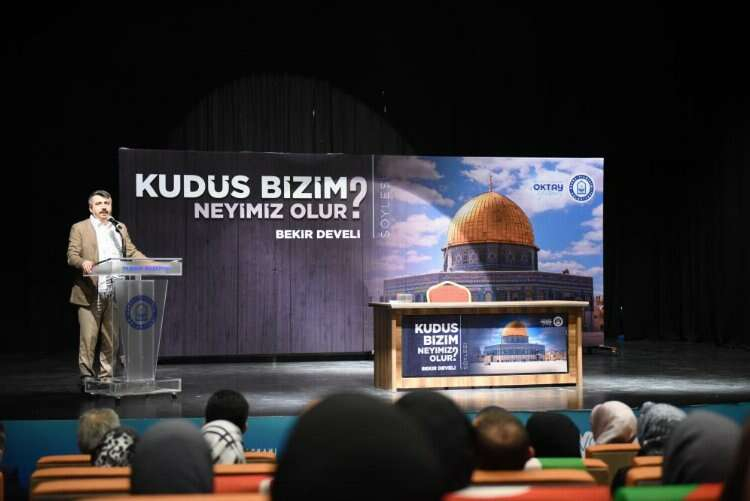 Barış Manço Kültür Merkezi’nde gerçekleştirilen organizasyona Yıldırım Belediye Başkanı Oktay Yılmaz, Yıldırım İlçe Kaymakamı Metin Esen, AK Parti Yıldırım İlçe Başkanı İrfan Akkaya ve çok sayıda izleyici katıldı. Kudüs Bizim Neyimiz Olur isimli söyleşiyi gerçekleştiren Sunucu ve Yazar Bekir Develi, Filistin’de yaşananları anlatırken Kudüs’ün Müslümanlar için neden önemli olduğunun da altını çizdi. Gazze’de yaşananların insanlık dramı olduğunu vurgulayan Develi, boykotun devamlı olması gerektiğini ifade etti.