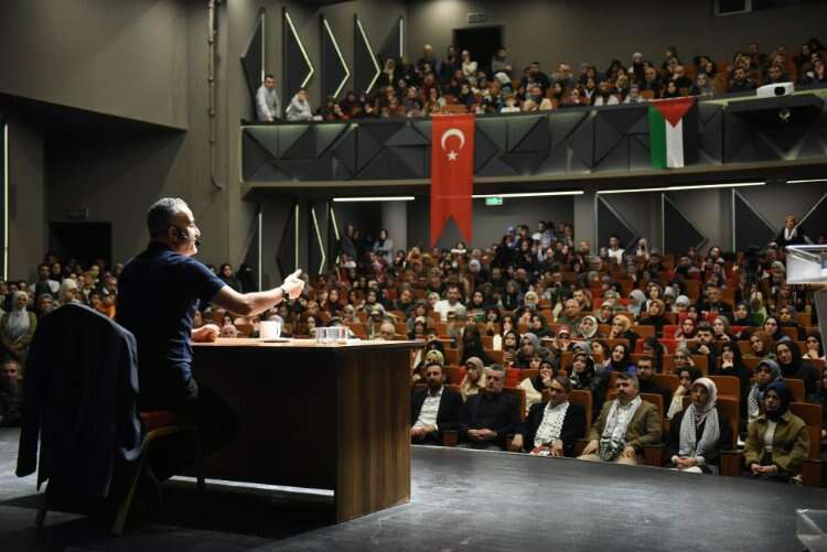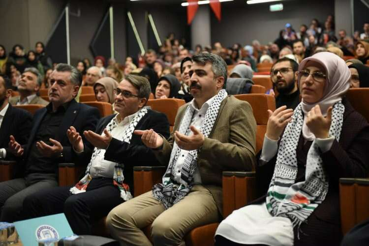 Söyleşinin ardından sahneye çıkan Yıldırım Belediye Başkanı Oktay Yılmaz, “Kudüs, insanlığın merkezi, bizim gönül coğrafyamızın incisidir. Müslümanların kutsal mabedidir. 75 yıldır İsrail zulmü karşısında sadece ve sadece yüreklerindeki imanın gücüyle mücadele eden, insanlığın ve Müslümanların haysiyetini koruma görevini üstlenen Filistinli kardeşlerime şükranlarımı sunuyorum. İnançlarını ve vatanlarını savunurken şehit düşen kardeşlerimize Rabbimden rahmet diliyor ve bu mücadelede yaralanan gazilerimize acil şifalar diliyorum. Terörle mücadele operasyonlarının devam ettiği bölgelerden ne yazık ki acı haberler aldık.