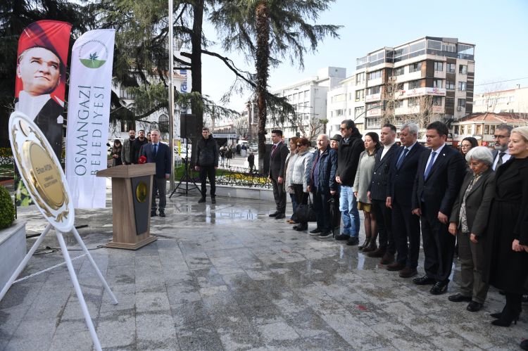 Osmangazi Belediye Başkanı Erkan Aydın, Ulu Önder Mustafa Kemal Atatürk öncülüğünde gerçekleştirilen inkılapların önemli bir parçası olan Türk Medeni Kanunu’nun Türkiye Büyük Millet Meclisi tarafından kabulünün 100’üncü yıl dönümünde Osmangazi Kent Konseyi Başkanı Sevim Sakallı ile birlikte Atatürk Heykeli’ne çelenk bıraktı. Törene Başkan Erkan Aydın’ın yanı sıra başkan yardımcıları, belediye meclis üyeleri, Osmangazi Kent Konseyi Yürütme Kurulu üyeleri, muhtarlar ve STK temsilcileri katıldı.