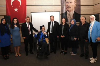 Koyduğu iki hedefi de gerçekleştiren Fırat Kıpçak için Osmangazi Belediyesi Engelliler Bakım Merkezi OBAM’da mezuniyet töreni düzenlendi. Mezuniyet cübbesi ve kepini giyen Kıpçak, diplomasını Osmangazi Belediye Başkan Yardımcısı Mücahit Yıldızhan ve Osmangazi Halk Eğitim Müdürü Zeynep Terece’nin elinden aldı. Mezuniyet töreninde arkadaşlarının yalnız bırakmadığı özel gereksinimli Fırat Kıpçak, kepini havaya atarak mutluluğunu arkadaşlarıyla paylaştı.