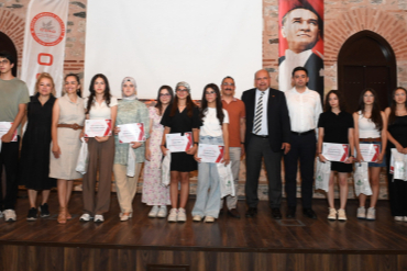 Sertifika alan öğrenciler Osmangazi Belediye Başkan Yardımcısı Tolga Kornoşor, tarafından çeşitli hediyelerle ödüllendirildi.