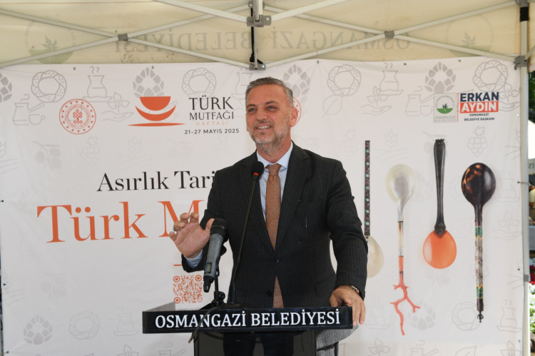 Birlik ve beraberlik sofrada başladığını ifade eden Osmangazi Belediye Başkanı Erkan Aydın, “Ortak sofralar, ortak değerler demek. Bizleri bir araya getiren yemeğin etrafında kurulan muhabbet, paylaşım ve kültür günümüzde hızlı yaşam tarzı ve ekonomik zorluklar geleneksel sofraları gölgede bıraksa da, bizler köklerimizden aldığımız güçle kültürümüze sahip çıkmaya devam ediyoruz. Bursa mutfağının kendine has tatları; kuzu etiyle hazırlanan nefis yemekler, kestane ve enginarın uyumuyla ortaya çıkan özel lezzetler, Bursa inciriyle taçlanan tatlılar yalnızca damaklarımızı değil, kalplerimizi de doyuruyor. Türk Mutfağı Haftası kapsamında, Kültür ve Turizm Bakanlığı ile Bursa Valiliği iş birliğinde Tophane Meydanı’nda düzenlediğimiz etkinlikte bu ortak mirası yaşatmanın mutluluğunu yaşadık. Sofralarda buluşmamıza vesile olan herkese teşekkür ediyorum” dedi.