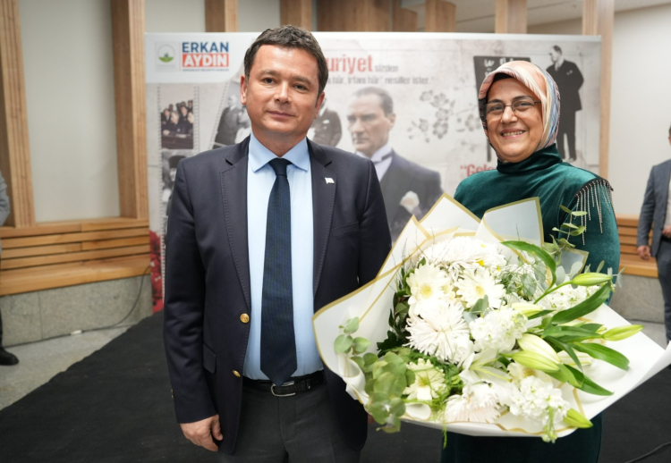 Konuşmaların ardından Osmangazi Belediye Başkanı Erkan Aydın, Osmangazi Halk Eğitim Müdürü Zeynep Terece’ye Öğretmenler Günü dolayısıyla çiçek takdim etti.