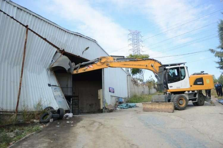 Osmangazi Belediyesi, Ovaakça Santral Mahallesi’nde tarım arazisi üzerine inşa edilen kaçak fabrikaları yıktı.