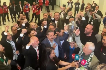 Devlet eski Bakanı AK Parti Artvin Milletvekili Faruk Çelik ile Bursa Büyükşehir Belediye Başkanı Mustafa Bozbey, Bursaspor'un şampiyonluk kupasını birlikte kaldırdı.