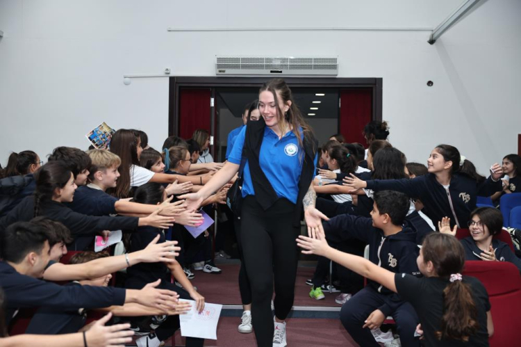 Nilüfer Belediyespor Eker Kadın Voleybol Takımı, öğrencilerle düzenlenen söyleşiye katıldı. Öğrencilerin sorularını cevaplayan voleybolcular, başarılı sporcu olmanın püf noktalarını paylaştı.